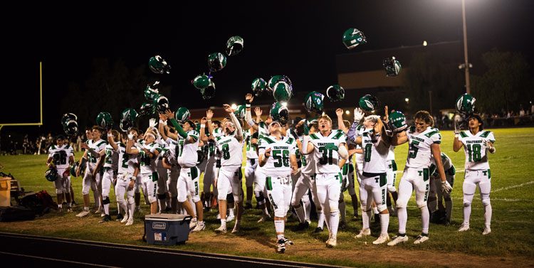 Steve Carter Photo/Gila Herald: Thatcher players celebrate after defeating Apache Junction 47-0 on Thursday.