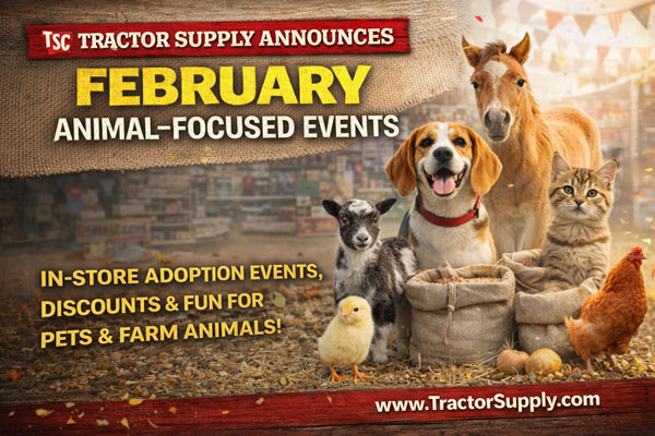 BRENTWOOD, Tenn. – Tractor Supply Company, the largest rural lifestyle retailer in the United States, announced on Monday a dynamic lineup of animal-focused events launching in February. From everyone’s favorite Chick Days to the debut of Animal Days, pet parents and animal owners can enjoy savings, supplies, adoptions, and in-store activities like never before.