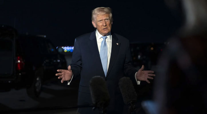 President Donald Trump speaks to the press before boarding Air Force One at Palm Beach International Airport in West Palm Beach, Fla., on Nov. 16, 2025, en route Joint Base Andrews. (Official White House Photo by Molly Riley)