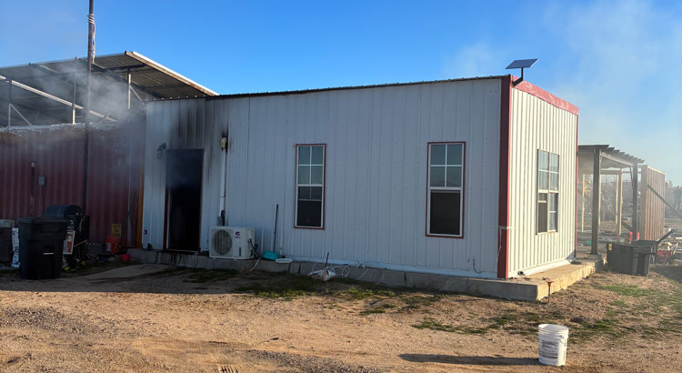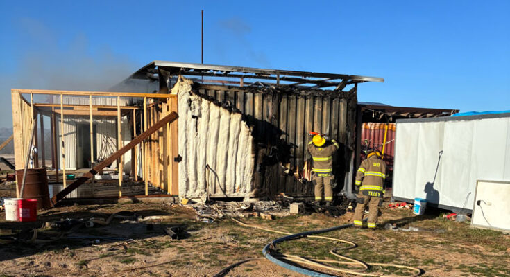 ARTESIA – A structure fire caused by a welding mishap damaged a unique residence constructed from connected metal shipping containers and a tin shed south of Safford in the Artesia area on Saturday, Jan 31.