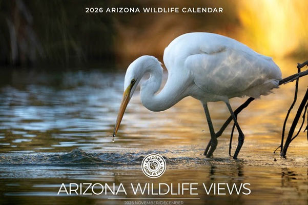 More than 690 photographers entered this year’s wildlife photo contest. Twelve winning images are published in Arizona Wildlife Views’ full-size 2026 wildlife calendar, available for $3 at all AZGFD offices statewide.