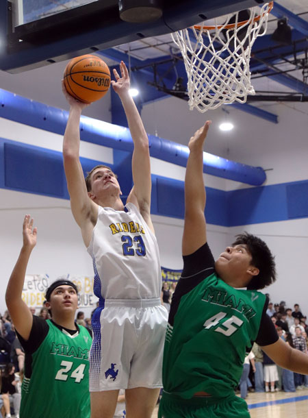 For Miami, Isaiah Tarango scored 20 points on eight field goals plus 4-4 free throws, and junior Kris Tarango scored 14 points on five field goals (one 3-pointer) plus 3-3 free throws. McGaughey added four points, junior Julio Rodriguez three, sophomore Dreyton Dickison and Dominic Romero two each.