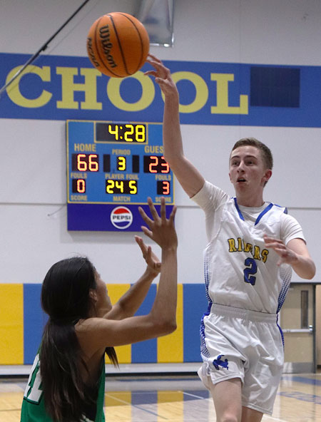 Senior Charles Richardson scored 19 points on eight field goals (one 3-pointer) plus 2-3 free throws, senior Keegan Corona scored 18 on seven field goals (two 3-pointers) plus 2-2 free throws, junior Joel Mattice 18 on nine field goals, and junior Nash Bodily 10 on four field goals (one 3-pointer) plus 1-2 free throws. Junior Tanner Smith added nine points, senior Keaton Bryce eight, junior Brendan Skiba seven, junior Gilbert Bryce four, senior Isaac Thompson and junior Stratton McRae two each.